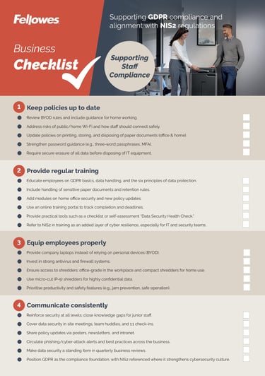 The new Fellowes Strengthen Your Security campaign aims to help your customers understand both regulations and their obligations so they can take confident steps towards compliance.